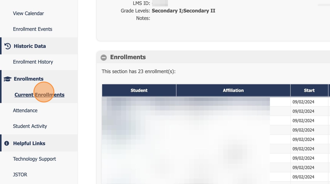 4. Click "Current Enrollments"