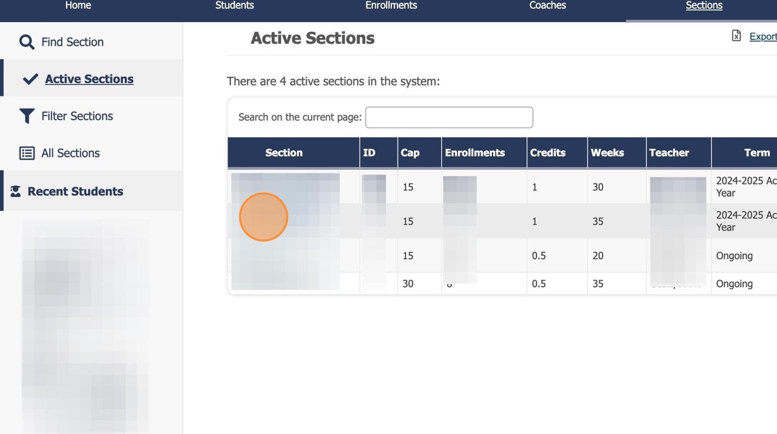 3. Click the course name where the student is enrolled