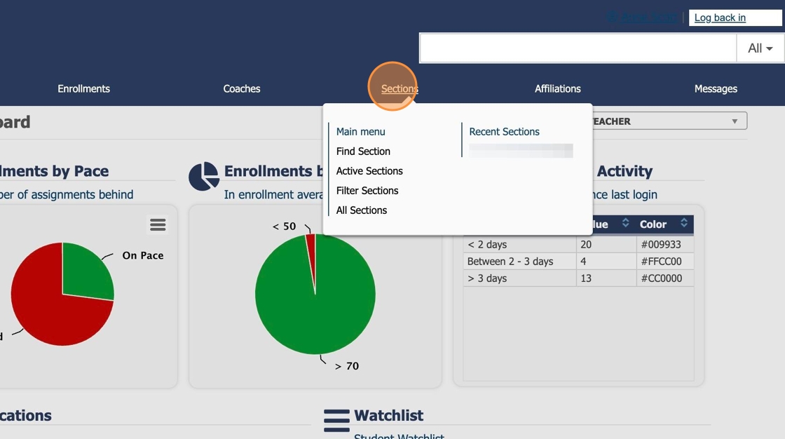 2. Click "Sections"