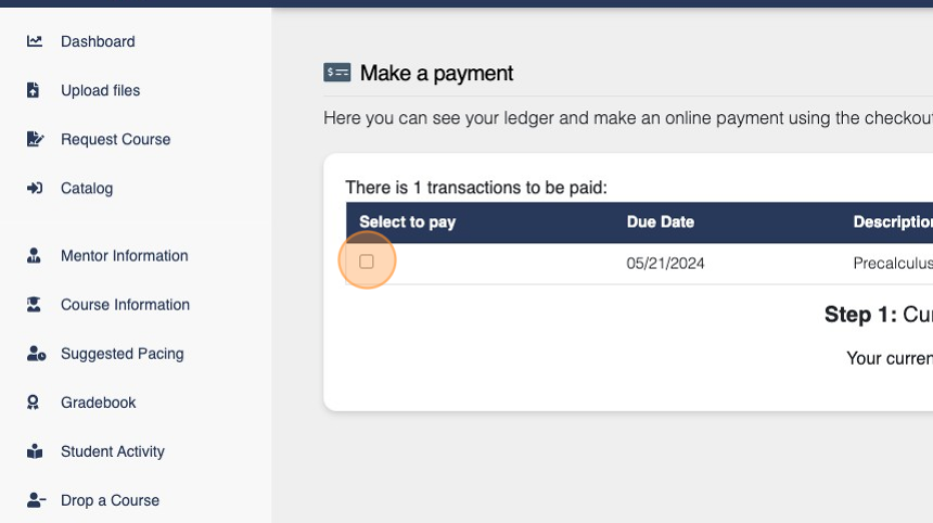 3. Click the checkbox next to the courses you wish to make a payment for.
